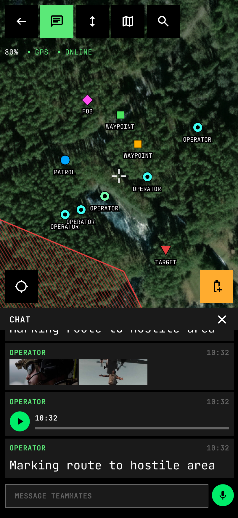 Put your whole team on a shared live map. See where everyone is, drop pins, draw plans, and chat — all in a private session only your group can see.